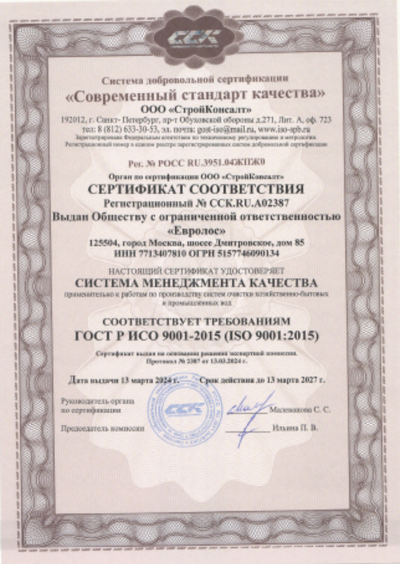 Евролос цэвэрлэх байгууламжууд нь хөрсний бүх нөхцөлд суурилуулах боломжтой бөгөөд хөрсний хүнд нөхцөл, устай газарт ч суурилуулах боломжтой. Суурилуулалтын явцад мэргэжлийн зөвлөгөө, туслалцаа үзүүлэх боломжтой.
